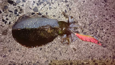 とりあえず、自分は波止手前のウィードが気になったのでエギを投げると即HIT。